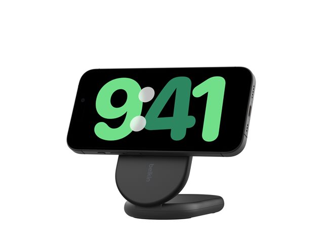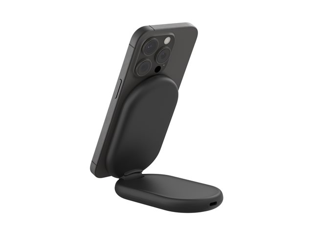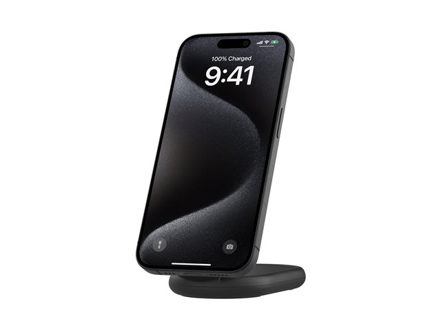Belkin BOOST CHARGE - Support de chargement sans fil - magnétique, pliable, avec Qi2 + adaptateur secteur - 15 Watt - 3 A - Fast Charge, Power Delivery 3.1 - noir - pour Apple iPhone 13, 14, 15, 16