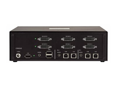 | Caractéristiques | Boîtier métallique, bouton poussoir, support pour double moniteur, prise en charge du lecteur CAC, audio analogique à 2 canaux, NIAP Protection Profile 4.0 |