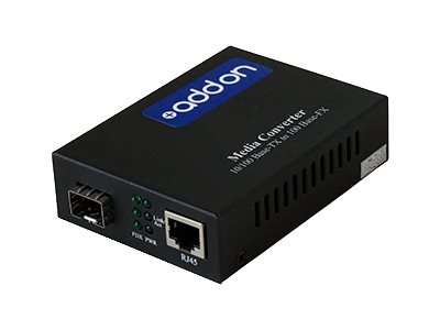 AddOn 100Mbs 1 RJ-45 to 1 SFP Media Converter - Convertisseur de média à fibre optique - 100Mb LAN - 100Base-TX - RJ-45 / SFP (mini-GBIC) - pour P/N: CWDM-SFP-1430-40-I-AO, CWDM-SFP-1570-40-I-AO