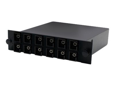 This is a MPO fiber optic cassette for a 3 bay interchangeable patch panel with 1 MPO in and 12 SC out, singlemode simplex OS1. It is a highly flexible fiber management unit that can be used stand alone or integrated into the MPO fiber optic patch panels. A high quality MPO cassette is designed to reduce installation time and cost for an optical network infrastructure in the premises environment.