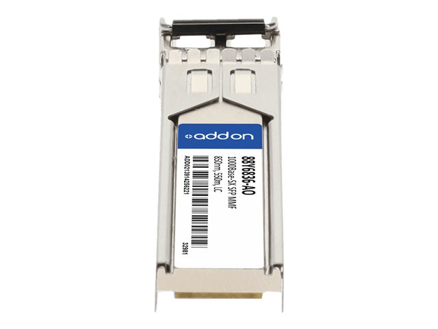 AddOn IBM 88Y6836 Compatible SFP Transceiver - Module transmetteur SFP (mini-GBIC) (équivalent à : IBM 88Y6836) - GigE - 1000Base-SX - LC multi-mode - jusqu'à 550 m - 850 nm - pour Juniper 24, 48; Juniper Networks EX 2200