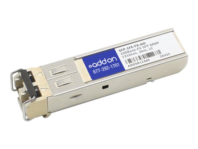 AddOn Juniper SFP-1FE-FX Compatible SFP Transceiver - Module transmetteur SFP (mini-GBIC) (équivalent à : Juniper SFP-1FE-FX) - 100Mb LAN - 100Base-FX - LC multi-mode - jusqu'à 2 km - 1310 nm - pour Juniper Networks MX5; EX 3200; 4200; MX Series MX10, MX40, MX80; MX-series MX10, MX104