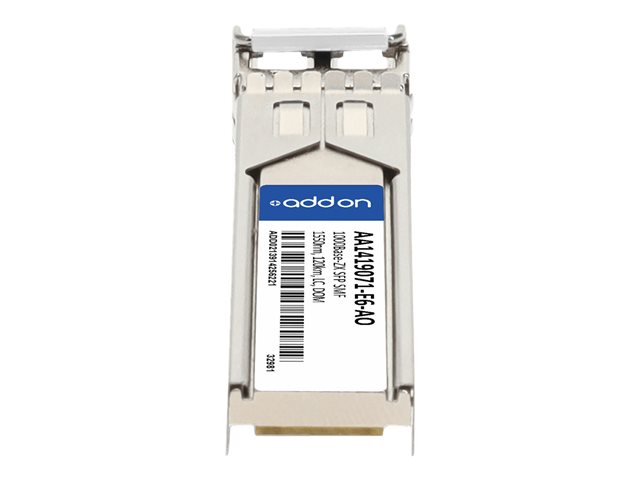 AddOn Avaya AA1419071-E6 Compatible SFP Transceiver - Module transmetteur SFP (mini-GBIC) (équivalent à : Avaya/Nortel AA1419071, Avaya/Nortel AA1419071-E5, Avaya/Nortel AA1419071-E6) - GigE - 1000Base-EX - mode unique LC - jusqu'à 120 km - 1550 nm - pour Nortel Metro Ethernet Services Unit 1850, 1850-12G-DC, 1850-12GE; Passport 8600