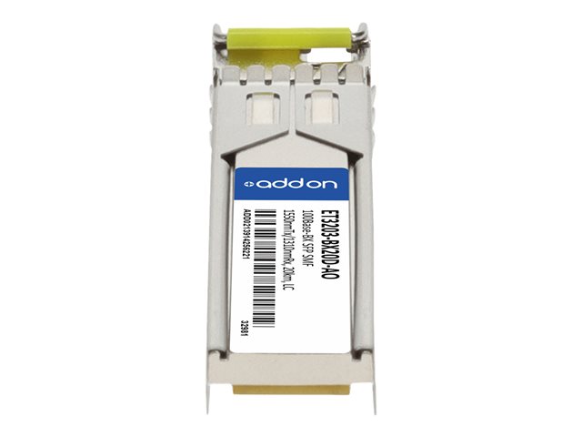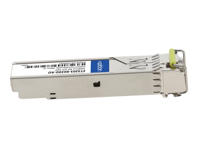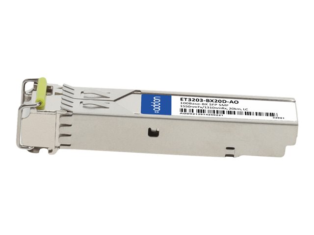 AddOn EdgecorE ET3203-BX20D Compatible SFP Transceiver - Module transmetteur SFP (mini-GBIC) (équivalent à : Edge-Core ET3203-BX20D) - 100Mb LAN - 100Base-BX - mode unique LC - jusqu'à 20 km - 1 550 (émission)/1 310 (réception) nm - pour P/N: FG-TRAN-QSFP+SR-BIDI-AO, MA-QSFP-40G-SR-BD-AO, RDH10248/1-AO, SFP-25G-BX-U-20-I-AO