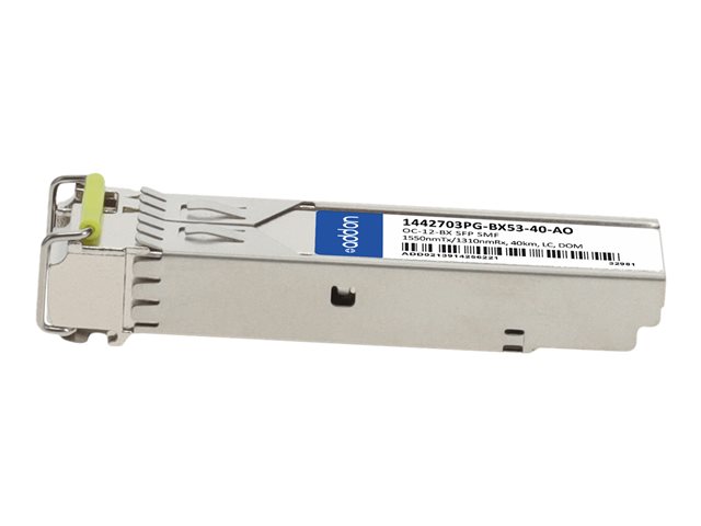 AddOn - Module transmetteur SFP (mini-GBIC) (équivalent à : ADTRAN 1442703PG-BX53-40) - mode unique LC - jusqu'à 40 km - OC-12 - 1 550 (émission)/1 310 (réception) nm - Conformité TAA - pour P/N: RDH10248/1-AO, SFP-25G-BX-D-40-AO, SFP-25G-BX-U-20-I-AO, XFP-10G-BX40-D-ALC-AO