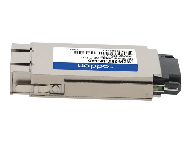 AddOn - Module transmetteur GBIC (équivalent à : Cisco CWDM-GBIC-1450) - 1GbE - 1000Base-CWDM - mode unique SC - jusqu'à 80 km - 1450 nm - Conformité TAA