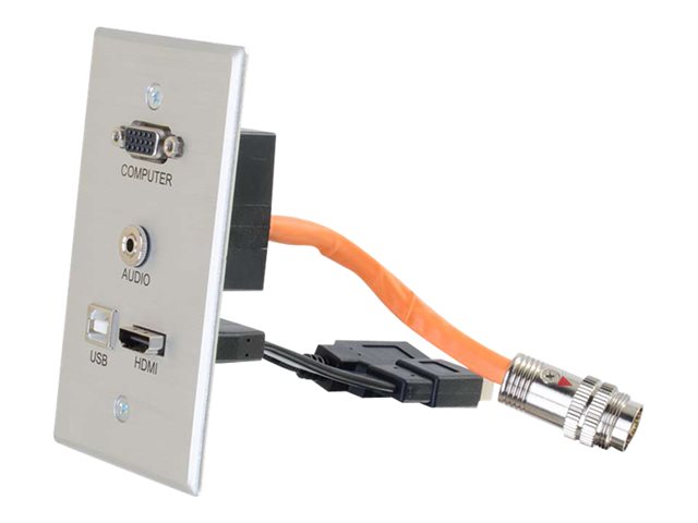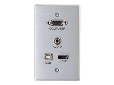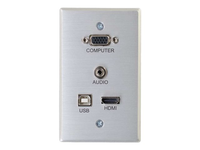 C2G RapidRun VGA + 3.5mm + HDMI and USB Pass Through Single Gang Wall Plate - Support de fixation - HD-15, fiche mini-phone Stéréo 3,5 mm, HDMI, USB Type B - aluminium - commande unique