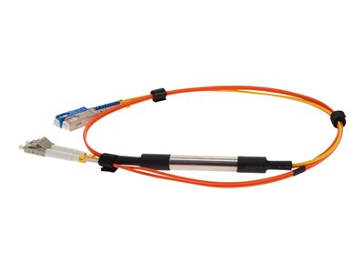 This is a 3m 62.5 micron fiber optic mode conditioning patch cable. This cable is a duplex multi-mode cable with a short segment of single mode fiber at the transmitting end. Specifically, it includes a 2 x LC 62.5/125 micron to 1 x SC 62.5/125 & 1 x SC 9/125 micron cable. The mode conditioning patch cable uses an offset splicing coupler, coupling the single mode fiber to the multi-mode section of the cable. The offset occurs from the center of the multi-mode fiber. Our fiber mode patch cables are to be used with LX, or longwave, gigabit ethernet transceivers that use both SM and MM fibers. With normal multi-mode patch cables, the transceivers can generate multiple signals causing differential mode delay (DMD), severely limiting transimission distances. Our fiber mode conditioning cables remove these multiple signals, eliminating problems at the receiver end. These cables are recommended for multi-mode cable runs greater than 50 feet. Our fiber mode conditioning patch cables are 100% compliant for all of your networking needs. They are compliant with IEEE 802.3z and provide low insertion loss. Our patch cables are 100% compliant for all of your networking needs. Our products are guaranteed by federal law to not affect or void OEM warranties.