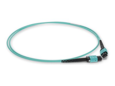This is a 2m MPO (female) to MPO (female) 12-strand aqua crossover riser-rated fiber patch cable. An OM3 cable has a core size of 50 microns that supports 10 Gigabit Ethernet at lengths measuring up to 300 meters, and 40 Gigabit or 100 Gigabit Ethernet measuring up to 100 meters. This optical fiber, nonconductive, riser (OFNR) cable is best suited for use in interior fiber-optic applications. Our patch cables are 100% compliant for all of your networking needs. Our products are guaranteed by federal law to not affect or void OEM warranties.