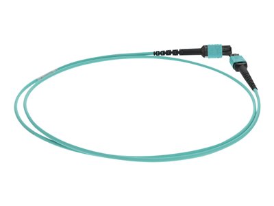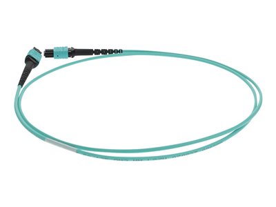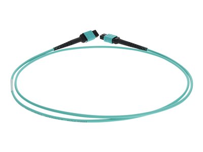 This is a 9m MPO (female) to MPO (female) 12-strand aqua crossover riser-rated fiber patch cable. An OM4 cable has a core size of 50µm microns that supports 10 Gigabit Ethernet at lengths measuring up to 550 meters, and 100 Gigabit Ethernet measuring up to 150 meters and is reverse compatible with OM3. This optical fiber, nonconductive, riser (OFNR) cable is best suited for use in interior fiber-optic applications. Our patch cables are 100% compliant for all of your networking needs. Our products are guaranteed by federal law to not affect or void OEM warranties.