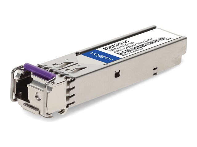 AddOn - Module transmetteur SFP (mini-GBIC) (équivalent à : HP 0231A11U) - 1GbE - 1000Base-BX - mode unique LC - jusqu'à 10 km - 1 310 (émission)/1 490 (réception) nm - Conformité TAA - pour P/N: FG-TRAN-QSFP+SR-BIDI-AO, MA-QSFP-40G-SR-BD-AO, RDH10248/1-AO, SFP-25G-BX-U-20-I-AO