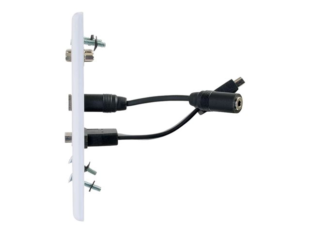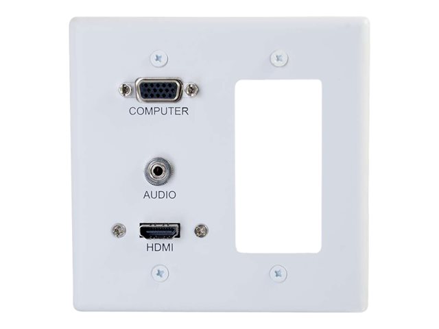 C2G Decorative Dual Gang VGA, 3.5mm Audio and HDMI Wall Plate White - Support de fixation - encastrable - fiche mini-phone Stéréo 3,5 mm, HDMI, VGA - blanc - à commande double