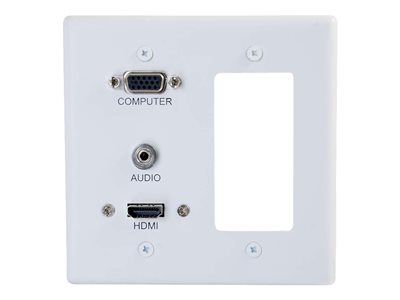 | Description du produit | C2G Decorative Dual Gang VGA, 3.5mm Audio and HDMI Wall Plate White - support de fixation |