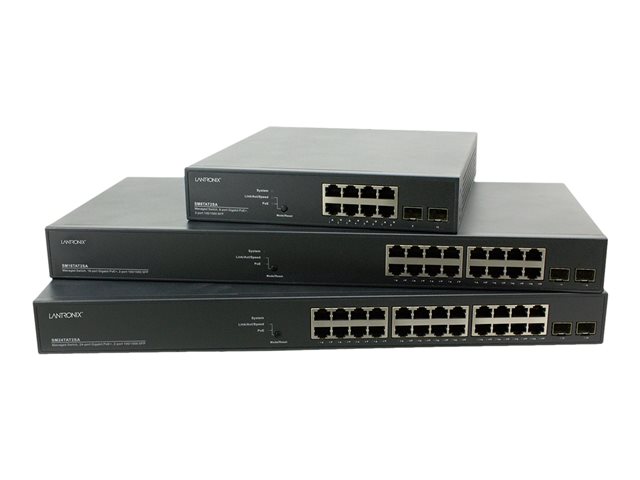 Lantronix SM24TAT2SA - Commutateur - Géré - 24 x 10/100/1000 (PoE+) + 2 x 100/1000 SFP - de bureau - PoE+ (370 W)