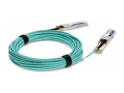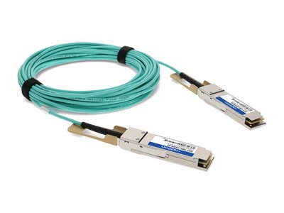 Discover the AddOn Networks 100GBase-AOC direct attach cable, a high-performance solution designed to meet the demands of modern network infrastructures. This Active Optical Cable (AOC) leverages multimode fiber optic technology to deliver superior data transfer speeds and signal integrity over long distances. With QSFP28 connectors on both ends, it offers broad compatibility across various devices, ensuring a seamless integration into your existing setup. Compliant with MSA standards and TAA compliant, this cable represents a reliable and efficient choice for enhancing your network's performance.