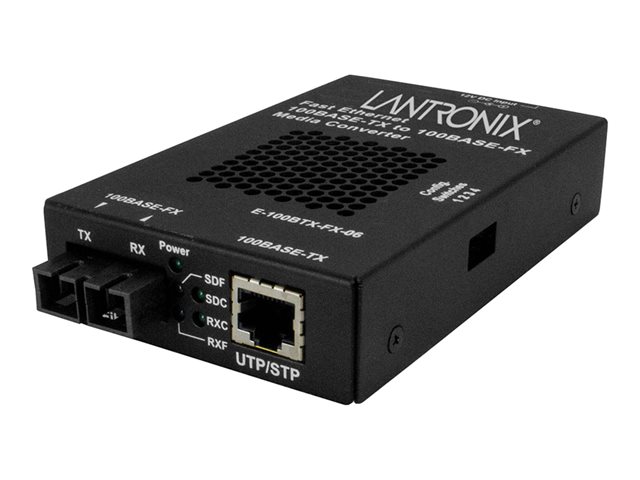 Lantronix E-100BTX Series - Convertisseur de média à fibre optique - 100Mb LAN - 100Base-TX, 100Base-FX - RJ-45 / SC multi-mode - jusqu'à 2 km - 1300 nm - Conformité TAA