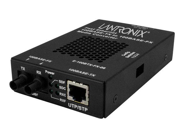 Lantronix E-100BTX Series - Convertisseur de média à fibre optique - 100Mb LAN - 100Base-TX, 100Base-FX - RJ-45 / ST multi-mode - jusqu'à 2 km - 1300 nm - Conformité TAA