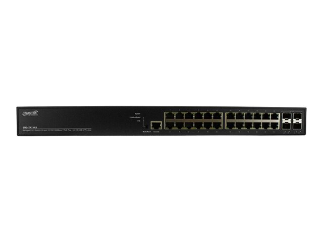 Lantronix SM24TAT4XB - Commutateur - C3 - Géré - 24 x 10/100/1000 (PoE+) + 4 x 1 Gigabit / 10 Gigabit SFP+ - Montable sur rack - PoE+ (370 W) - Conformité TAA