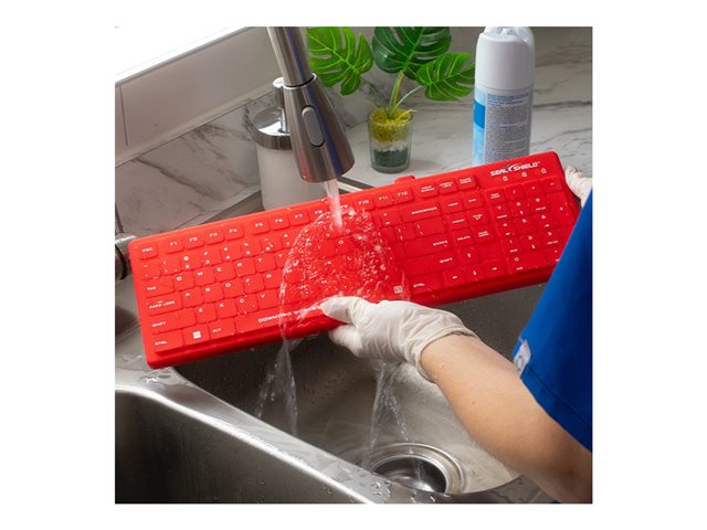 Seal Shield Seal Silk Pro - Clavier - silicone entièrement scellé et étanche - full size - lavable - USB - QWERTY - Anglais US - commutateur : clés de voyage courtes - rouge