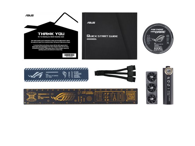 Fixation à crochets et à boucles, porte-cartes graphiques, câble 3 x 8 broches vers 12VHPWR, carte de remerciement, aimant ROG, règle PCB ROG, keycap de carte graphique ROG