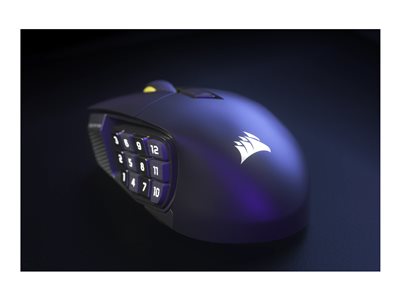 | Caractéristiques | 12 boutons mécaniques secondaires, capteur CORSAIR MARKSMAN, boutons CORSAIR QUICKSTRIKE, Elgato Stream Deck integration, 2 zones RGB, câble tressé, compartiment de stockage du récepteur, pieds de souris 100% PTFE |