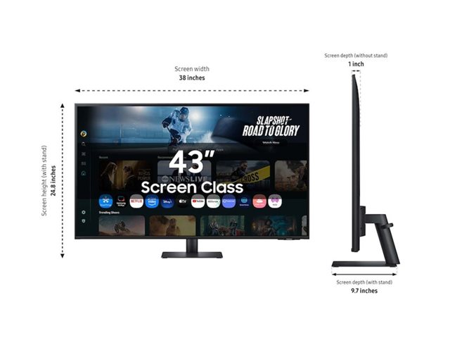 Samsung S43FM702UN - M70F Series - écran LED - Intelligent - 43" (42.5" visualisable) - 3840 x 2160 4K UHD (2160p) @ 60 Hz - VA - 300 cd/m² - 5000:1 - HDR10 - 4 ms - 2xHDMI, USB-C - haut-parleurs - noir