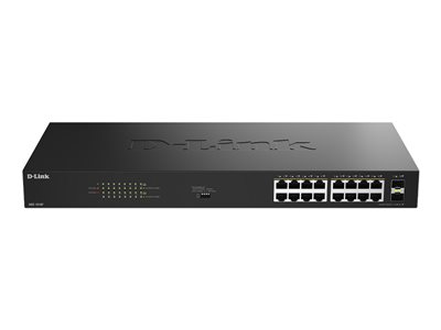 D-Link DGS 1018P - Commutateur - non géré - 16 x 10/100/1000 (PoE) + 2 x SFP Gigabit combiné - Montable sur rack, de bureau - PoE (240 W)