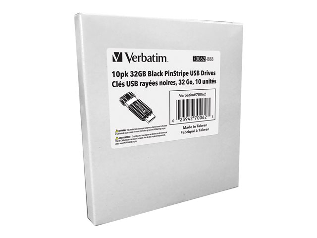 Verbatim PinStripe USB Drive - Clé USB - 32 Go - USB 2.0 - noir (pack de 10)