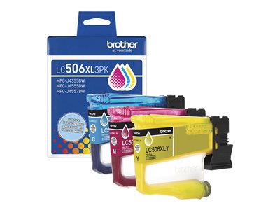 | Description du produit | Brother LC506XL3PK - pack de 3 - à rendement élevé - jaune, cyan, magenta - original - cartouche d'encre |