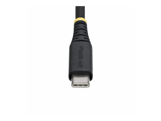 Le câble USB-C de StarTech.com est conçu pour offrir fiabilité et commodité. Doté d'une construction robuste avec une gaine double tressée en élastomère thermoplastique et en nylon, ce câble est à la fois résistant et anti-enchevêtrement. Il prend en charge USB Power Delivery, fournissant jusqu'à 60 W pour une charge rapide et un transfert de données à des débits de 480 Mbps. Le câble est équipé de connecteurs étiquetés pour une identification facile, garantissant une connectivité sans souci pour divers appareils.
