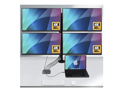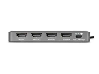 This quad-display USB-C mini-dock expands your visual workspace and streamlines connectivity without sacrificing ports or power. Turn a single USB-C port into a high-performance workstation by connecting up to four 4K 60Hz HDMI monitors. Ideal for multitasking across large desktops, even on systems with limited GPU or native video output capabilities. 140W power delivery passthrough charges your laptop, while the USB-A 2.0 port supports essential peripherals like a mouse, keyboard, or wireless dongle. This helps you stay productive with no compromise on available ports. DisplayLink drivers install automatically on most Windows and ChromeOS systems, reducing setup time and simplifying large scale IT deployments. For macOS devices, a manual driver installation is required. Designed for IT, finance, engineering, and education use, this compact, travel-ready workspace adapter enables easy transitions between home, office, and on-the-go setups. Its durable design and broad compatibility make it the perfect choice for professionals who require consistent performance wherever they work.