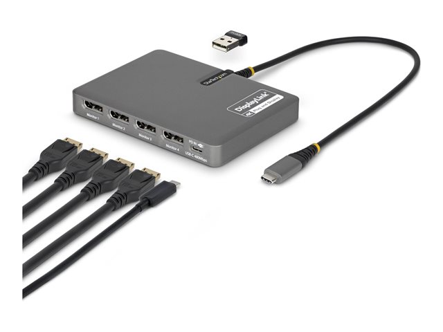 This quad-display USB-C mini-dock expands your visual workspace and streamlines connectivity without sacrificing ports or power. Turn a single USB-C port into a high-performance workstation by connecting up to four 4K 60Hz DisplayPort monitors. Ideal for multitasking across large desktops, even on systems with limited GPU or native video output capabilities. 140W power delivery passthrough charges your laptop, while the USB-A 2.0 port supports essential peripherals like a mouse, keyboard, or wireless dongle. This helps you stay productive with no compromise on available ports. DisplayLink drivers install automatically on most Windows and ChromeOS systems, reducing setup time and simplifying large scale IT deployments. For macOS devices, a manual driver installation is required. Designed for IT, finance, engineering, and education use, this compact, travel-ready workspace adapter enables easy transitions between home, office, and on-the-go setups. Its durable design and broad compatibility make it the perfect choice for professionals who require consistent performance wherever they work.