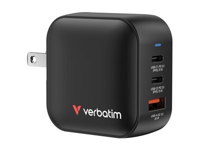 Verbatim - Adaptateur secteur - GaN - 70 Watt - 5 A - PD 3.0, PD/PPS, QC 4.0 - 3 connecteurs de sortie (2 x USB-C, USB)