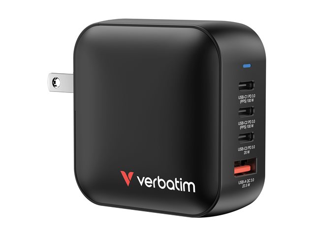 Verbatim - Adaptateur secteur - GaN - 100 Watt - 5 A - PD 3.0, PD/PPS, QC 4.0 - 4 connecteurs de sortie (3 x USB-C, USB)