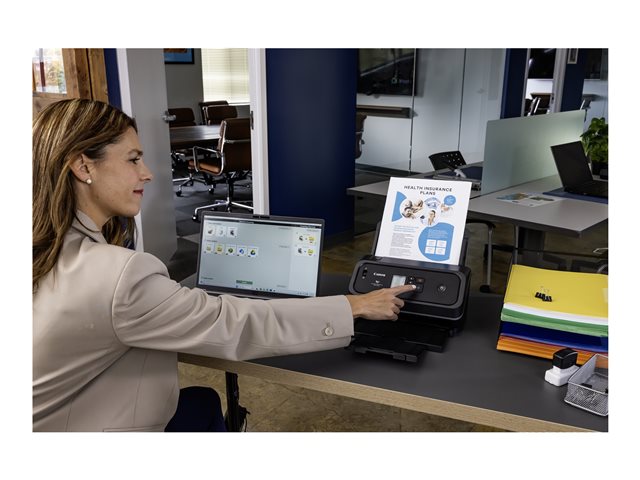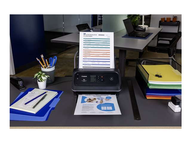 The Canon imageFORMULA DR-C340 is a versatile document scanner designed for efficiency and reliability. It offers a compact desktop form factor, making it ideal for small offices and home use. With the ability to scan various document types up to a maximum optical resolution of 600 DPI, this scanner excels in delivering clear, high-quality images. The automatic duplexing feature allows for double-sided scanning, enhancing productivity by reducing the time spent on scanning multiple pages. With a maximum document scanning speed of 40 pages per minute in both color and black and white, the DR-C340 helps streamline workflows with ease.
