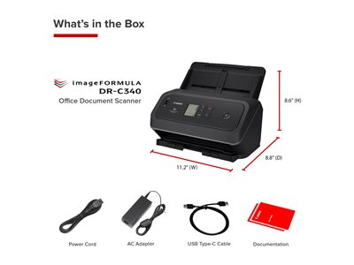 Canon imageFORMULA DR-C340 - Scanner de documents - CMOS / CIS - Recto-verso - Legal - 600 dpi - jusqu'à 40 ppm (mono) / jusqu'à 40 ppm (couleur) - Chargeur automatique de documents (100 feuilles) - jusqu'à 7000 pages par jour - USB 2.0