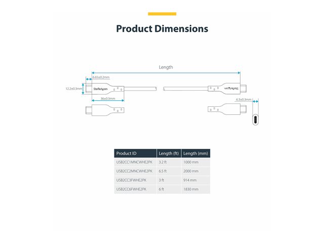 StarTech.com - Câble USB - USB-C (M) pour USB-C (M) - USB 2.0 - 3 A - 90 cm - USB Power Delivery (60W) - blanc (pack de 2)