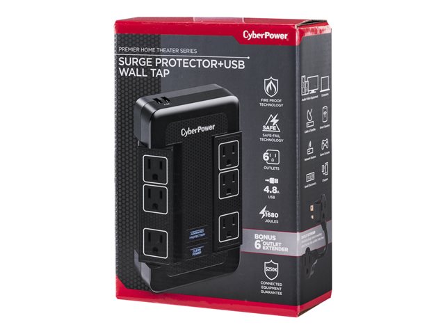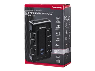 CyberPower Home Theater Series HT600WSU2A - Protection contre les surtensions - CA 125 V - connecteurs de sortie : 6 - noir