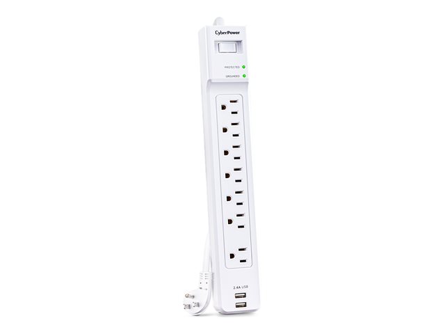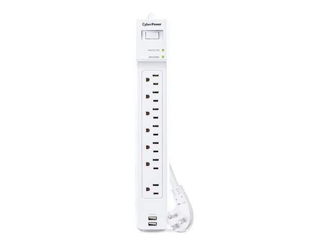 CyberPower Essentiel P704URC1 - Protection contre les surtensions - CA 125 V - 1875 Watt - connecteurs de sortie : 7 - 1.2 m cordon - blanc