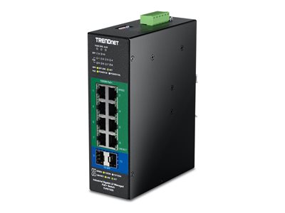 TRENDnet TI-PG103I - Version V1 - commutateur - industrial, L2, 24 - 57 V - Géré - 8 x 10/100/1000 (PoE+) + 2 x Gigabit SFP - Montage sur rail DIN - PoE+ (240 W) - Conformité TAA