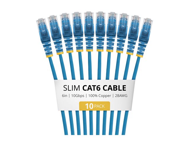 StarTech.com - Cordon de raccordement - RJ-45 (M) pour RJ-45 (M) - 20 cm - 3.6 mm - UTP - CAT 6 - sans crochet, support PoE 100W, mince, moulé, sans halogène, bloqué, débit de transfert de données jusqu'à 10 Gbps - bleu (pack de 10)