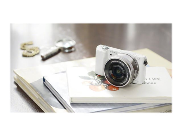 Sony a5000 ILCE-5000L - Appareil photo numérique - sans miroir - 20.1 MP - APS-C - 3x zoom optique objectif 16-50 mm - Wi-Fi, NFC - blanc