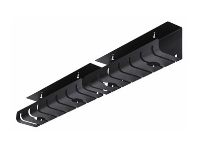 Maintain a clean, organized workspace and reduce the risk of tripping hazards or tangled cords with this 42in (1060mm) total length (21in/530mm per tray) under-desk cable management tray. Each tray is 4.3in (110mm) wide and 5.1in (130mm) deep to accommodate larger power bars and strips. Built to support up to 11lb (5kg) per tray, the trays securely hold multiple cables, cords, chargers, power bars, and strips without sagging. Integrated cable management slots improve accessibility and enhance workspace aesthetics by keeping cords neatly routed, contributing to better airflow. Easily mounts under wooden desks with a minimum thickness of 0.78in (20mm). All necessary hardware is included (4 wood screws) for a stable, straightforward installation. Powder-coated steel is durable, resistant to scuffs and damage, and remains stable even when fully loaded for long periods of time. Ships in ISTA-6 certified packaging to withstand various transportation conditions and handling processes.